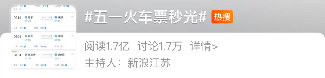 你抢到五一假期的票了吗?今天(17日),五一假期第一天的火车票开售,不少热门方向的火车票手快有手慢无,瞬间秒没!