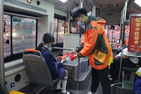 一汽公司还开通了培英中学-真光中学(芳村花园校区)等多条“如约助学”定制公交线路。由团员志愿者到场开展“开学季志愿服务活动”,向学生们派送“开学加油包”,做好导乘和指引等工作,助力学子平安返校。