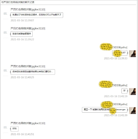 4、再次轻信弹出信息添加了自称北京市公安局“王警官”的微信