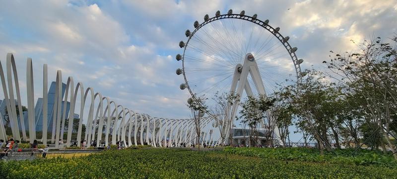 欢乐港湾“湾区之光”摩天轮位于深圳市宝安中心临海片区的滨海文化公园东侧,新圳河入海口侧,是宝安区以粤港澳大湾区和中国特色社会主义先行示范区“双区”建设为契机,在海湾宝地打造的城市新地标。