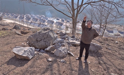 李桂林站在距离幼教点楼房后面50米的斜坡上,他的脚下就是不久前从山上滚落的巨石,碎成很多块。李桂林说,如果没有树木阻挡,巨石就可能直接砸到幼教点了。