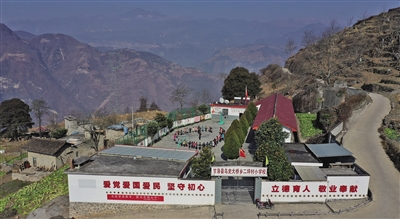 2021年2月,俯瞰二坪小学。除了文化课,李桂林夫妇还兼顾教学生音乐、体育和绘画等课程。