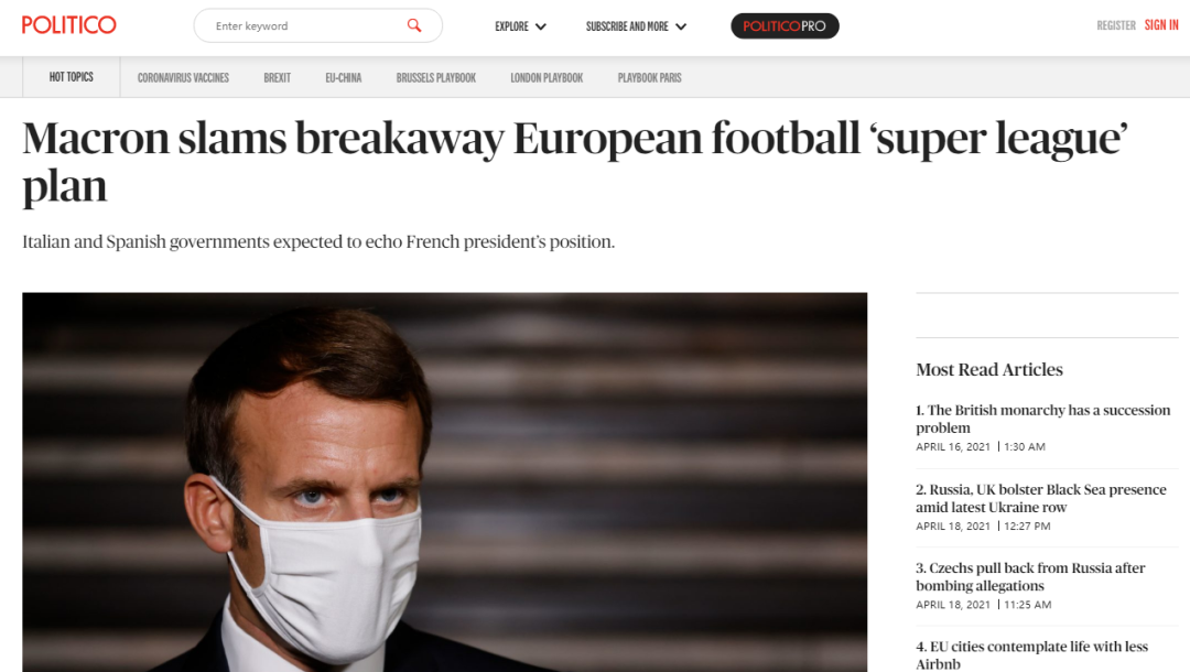 有分析称,欧洲超级联赛的组建完全脱离欧洲足联和国际足联的掌控,因此导致了多方的激烈反对,除约翰逊外,法国总统马克龙也公开发言反对联赛成立。国际足联在声明中批评称联赛成立是不尊重国际足球秩序。