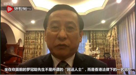 高志凯随即当场挑明,坐在BBC演播室的罗冠聪不是所谓的“民运人士”,而是一名香港法律下逃犯,“如果他返回香港,必将受到起诉,并且很有可能被判有罪”。