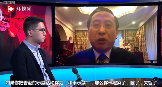“现在他说示威是‘和平’的,用你自己的眼睛观察,示威里的和平的一面在哪里?香港街头到处都是暴力,他们冲击立法会大楼,扰乱香港社会秩序,如果你把这称为‘和平示威’,那么你一定疯了,瞎了,失智了,”高志凯说道。