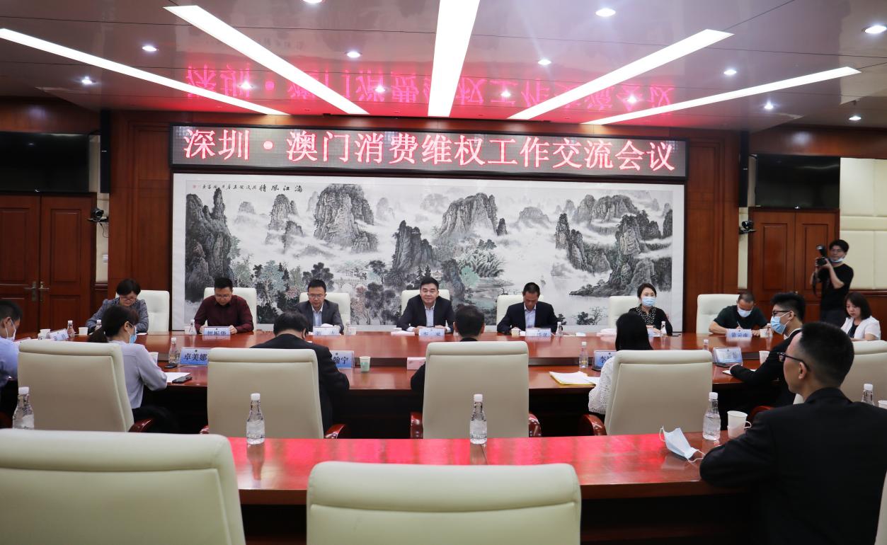 见圳客户端·深圳新闻网2021年4月19日讯 (记者 田志强)近日,澳门经济及科技发展局副局长陈汉生、澳门消委会执行主席黄翰宁一行6人赴深圳开展房地产领域消费维权工作交流,市消委会秘书长李廷义主持座谈会,市市场监管局局领导、市消委会副会长李平、市住建局房地产业处、市场监管局法规处、网监处、市场处、广告处、人事处、市稽查局参加座谈。