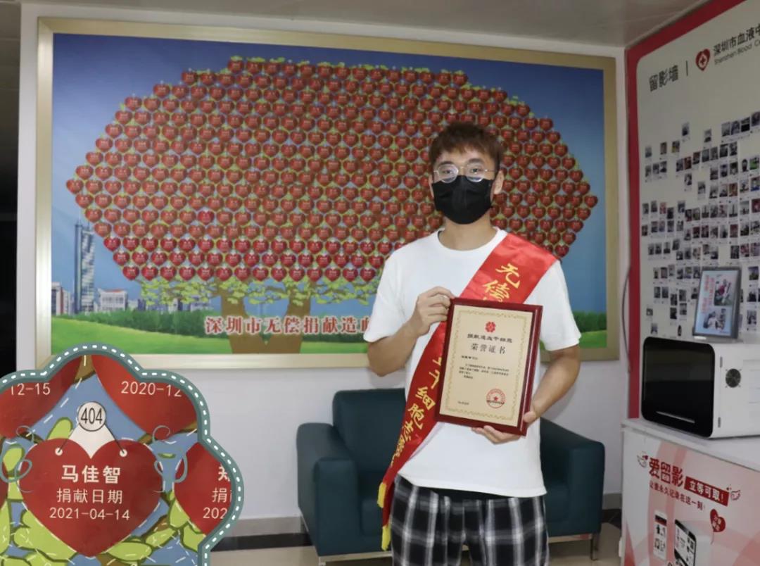 8、4月14日,深圳大学材料学院马佳智同学,与一位患有白血病的年轻父亲骨髓匹配成功,进行了造血干细跑的捐献。马佳智也成为继梁群老师、王凯民同学之后,第3位成功捐献血液干细胞的“深大人”。