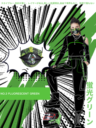 天马行空荧光绿,色彩浓烈,富有层次;新型防护理念,自由无边界,舒适且无痕。