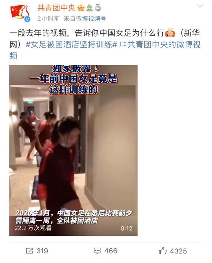 近日,一段视频的首次曝光,让网友感慨“中国女足为什么行”。