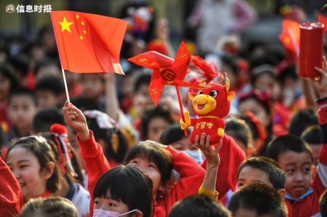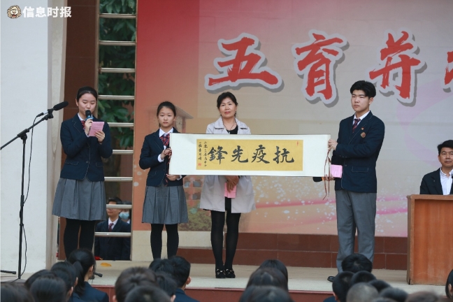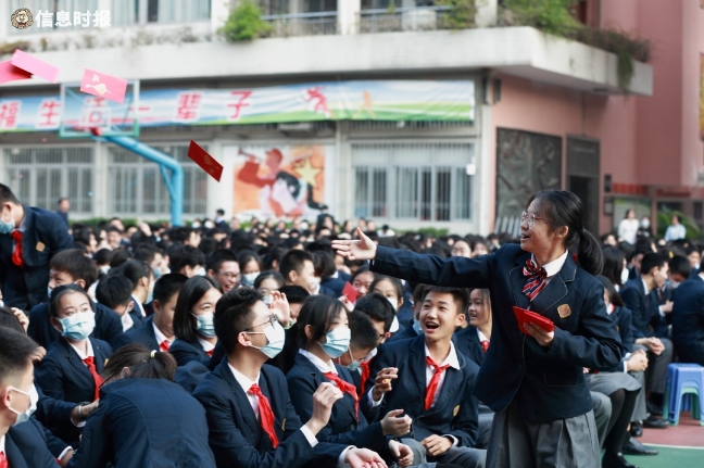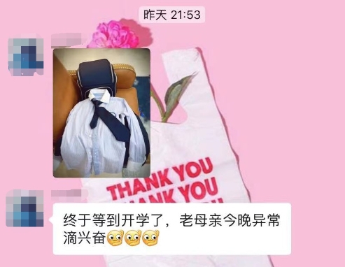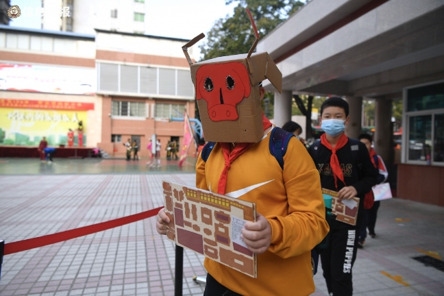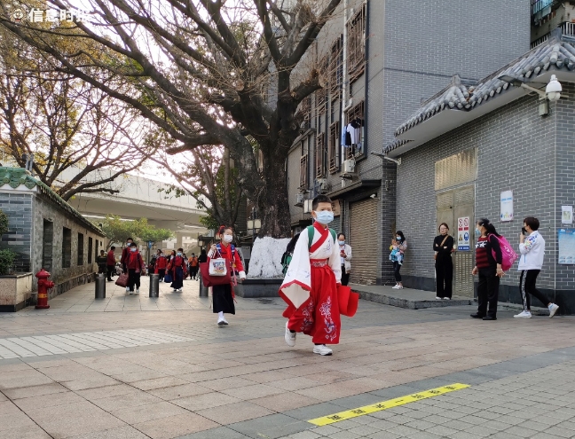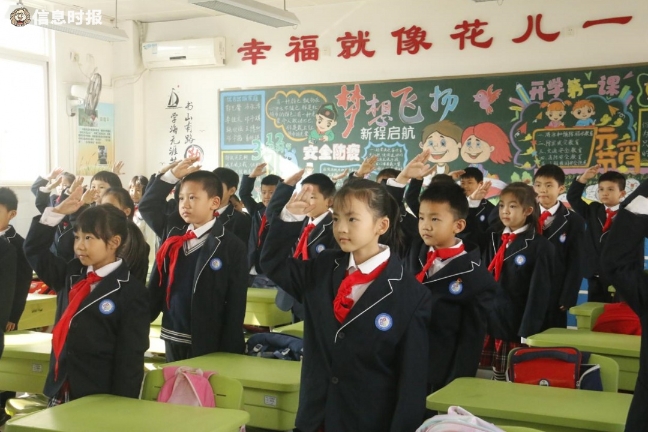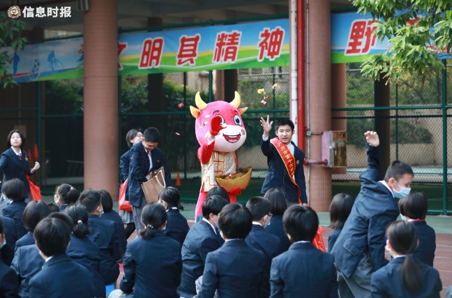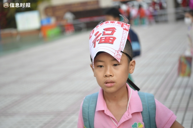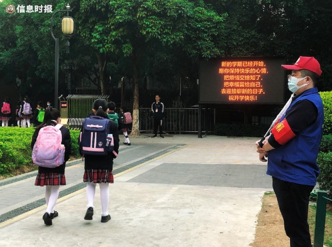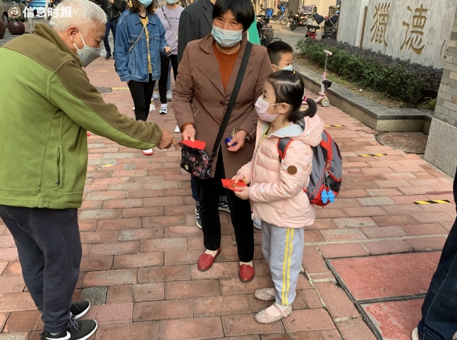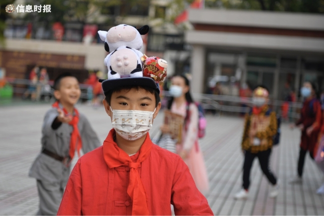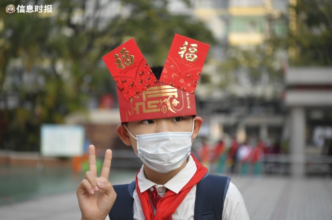 记者看到,学生们都戴上了红色的喜庆口罩,还有的同学精心穿上了红色的衣服,迎接新学期的到来。