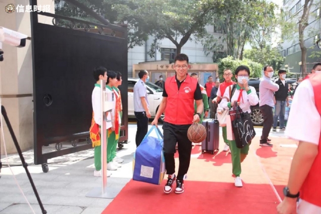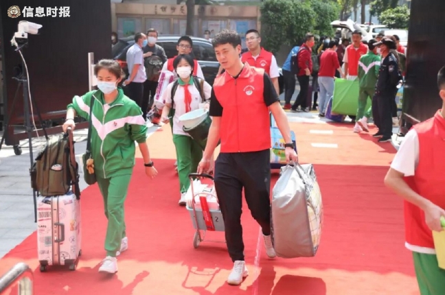 开学首日,广州市越秀区育才实验学校各年级学生分批错峰回校,跨入校门,师生志愿者团队热情辛勤的身影来回穿梭,帮返校学生提繁重的行李,迈着坚实的步伐,洋溢着助人为乐的微笑。空气中满是学生回校的温馨和友爱的温暖。