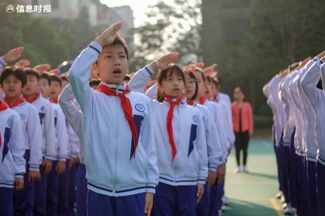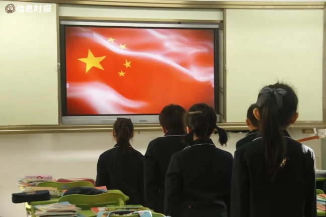 根据疫情防控的要求,东荟花园小学的同学们在教室观看了开学典礼。典礼在庄严的国歌声中拉开序幕,一听到熟悉的国歌声,同学们脸上的神情都变得庄重,骄傲地唱起了《义勇军进行曲》。