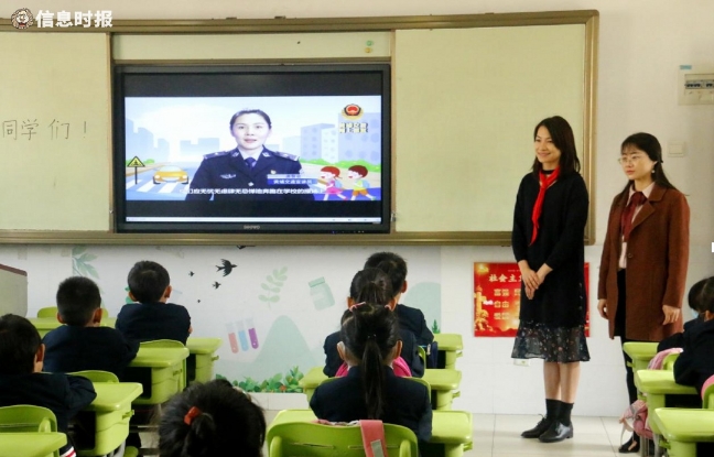 随后,学生与老师观看安全第一课。安全是底线。每学期开学初,学校都会以开学典礼为载体,为全校师生上好“安全第一课”。每年东荟花园小学都邀请到民警现身说法,在警察叔叔(阿姨)的讲解中,安全已在每位同学心中敲响警钟!