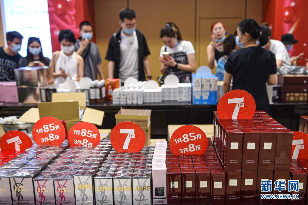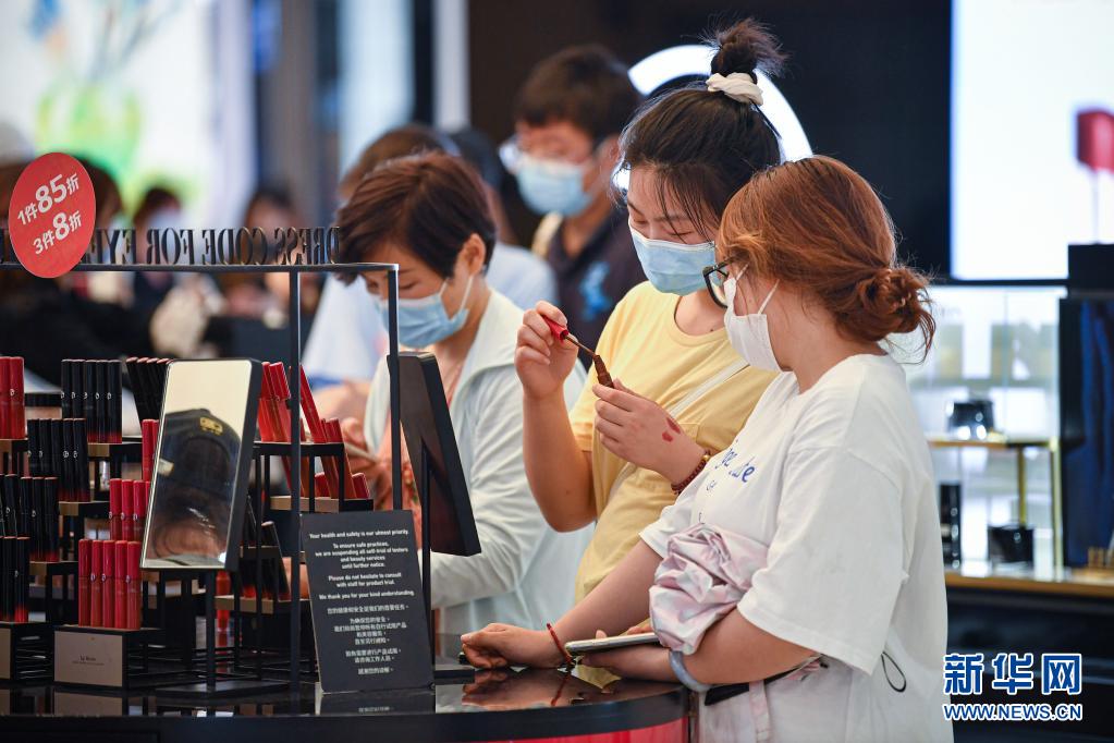 4月19日,消费者在海口日月广场免税店购物。新华社记者 蒲晓旭 摄