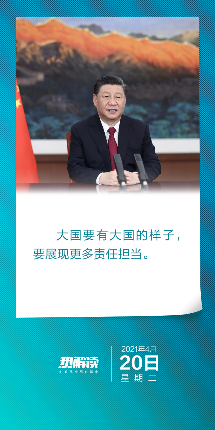 习近平主席以视频方式出席开幕式并发表主旨演讲,一句“大国要有大国的样子,要展现更多责任担当”引发共鸣。