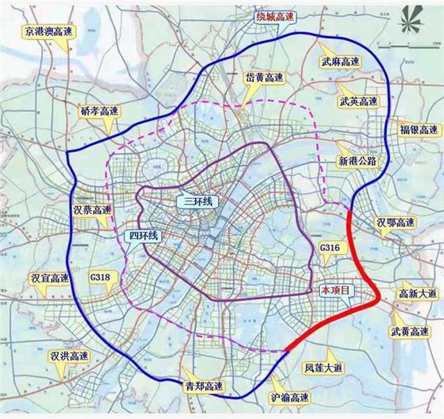 武汉绕城高速公路中洲至北湖段改扩建项目与武汉市四环线共线,起于藏龙岛枢纽互通,止于北湖枢纽互通,全长30公里,投资规模约41亿元,项目的开工建设对提升国家高速公路网的互通能力,将武汉打造成交通强国示范城市,促进光谷科创大走廊及沿线经济社会发展具有重要意义。