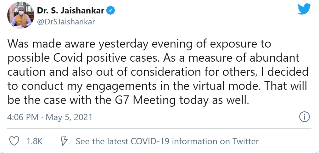 为了安然起见他抉择经由过程线上要领参加后续的g7外长会谈。