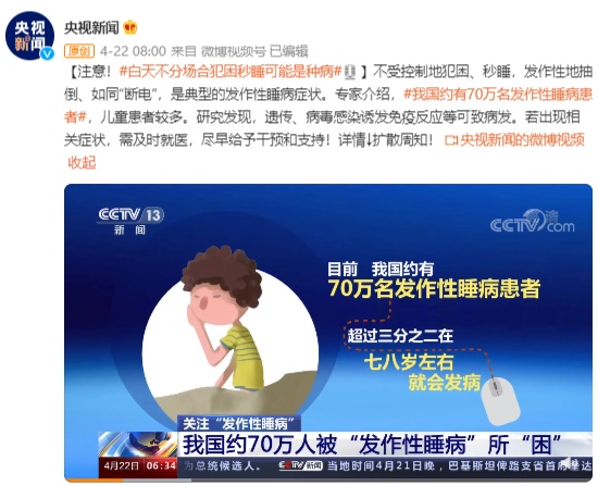 你见过这样的人吗?走路时、开车时、用饭时发生发火性地抽倒、犹如“断电”般地不受节制地犯困、秒睡,无法节制……当你身边呈现这样的人,那就适合心了这可能是患上了一种并不罕有的罕有病——“发生发火性睡病”>>>