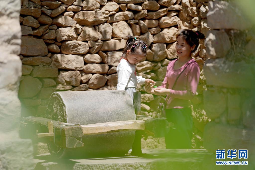 位于河北省邢台市临城县西部太行山区的驾游村子迎来浩繁旅客。驾游村子内房屋依山而建。