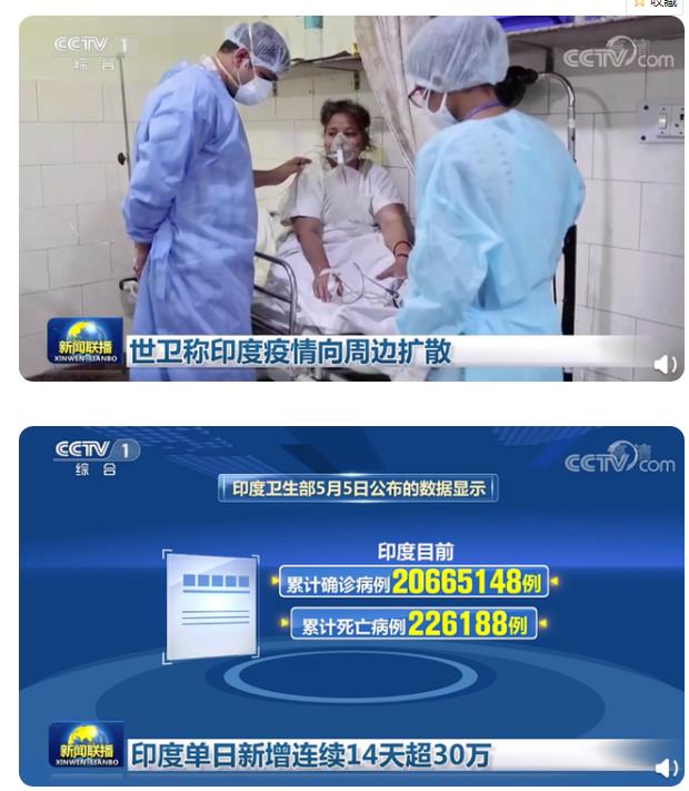 印度卫生部5号公布数据显示。 印度累计确诊病例20665148例。 单日新增确诊病例382315例。 这一数字继续14天跨越30万例。世卫组织5号宣布申报显示。 上周举世46%的新增确诊病例和25%的新增逝世亡病例来自印度。 世卫称印度疫情向周边扩散。
