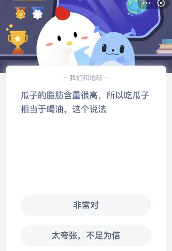 以是吃瓜子相称于喝油这个说法对吗?这是支付宝蚂蚁庄园5月6号今日庄园小讲堂的问题