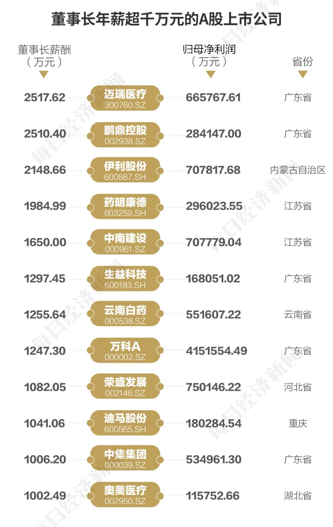 年薪跨越切切的董事长有12位