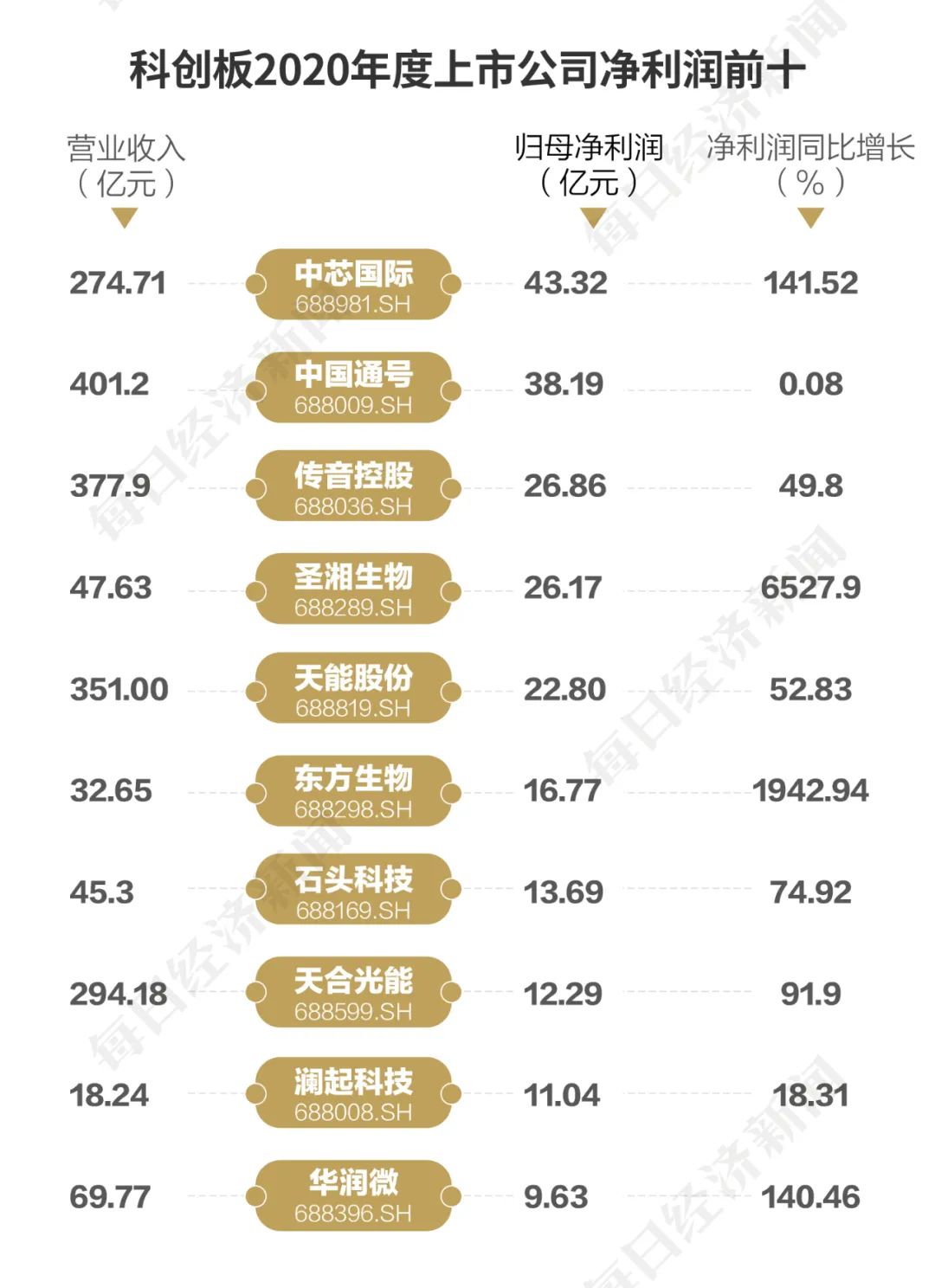科创板净利润前十的上市公司业绩基础都录得较大年夜幅度增长