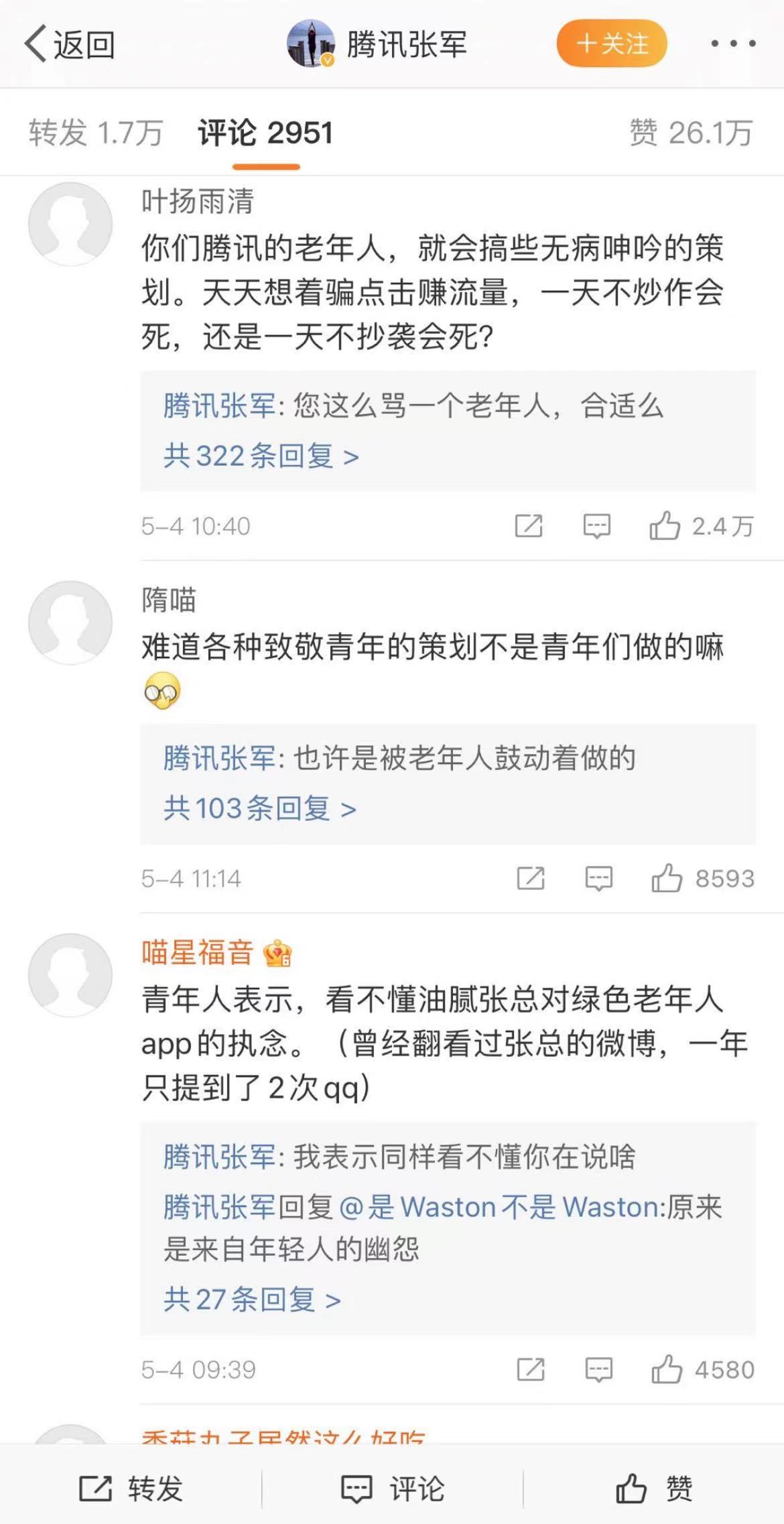 腾讯公关总监张军颁发了一条微博。