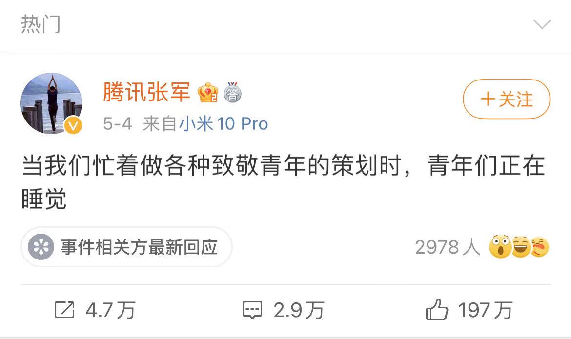 写道:“当我们忙着做各类致敬青年的策划时。