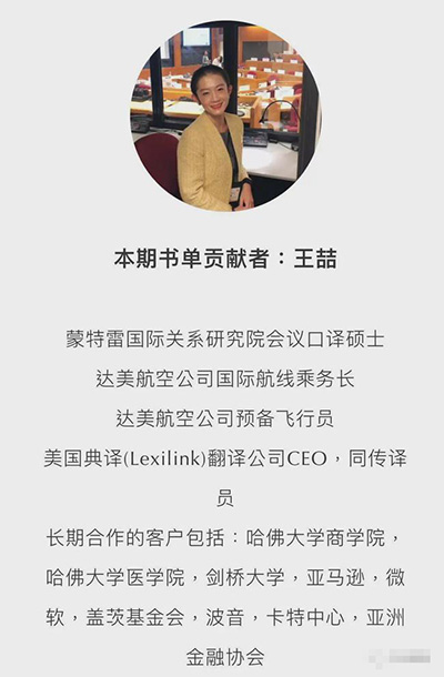 但她并不是盖茨的专职翻译我预测有些人便是由于看到王喆在盖茨基金会的翻译事情照