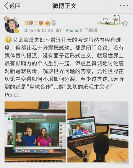 王喆在微博中称又见到盖茨夫妻
