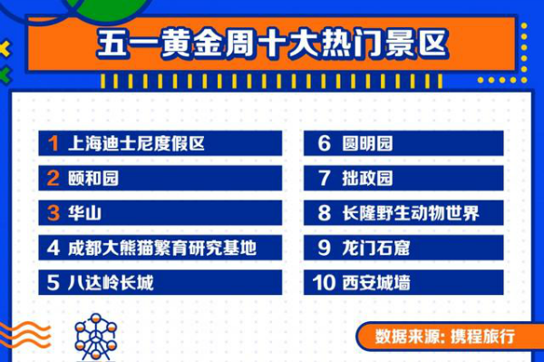 上海迪士尼度假区、颐和园、西岳、成都大年夜熊猫繁育钻研基地、八达岭长城、圆明园、拙政园、长隆野活跃物天下、龙门石窟、西安城墙跻身“五一”黄金周热门景区top10