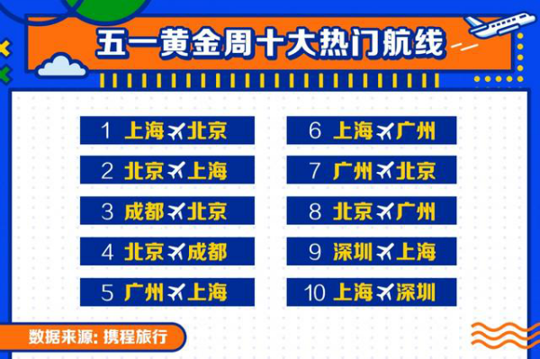 携程机票单日订单量比较2019年同期最高增幅约28%上海-北京、北京-上海、成都-北京、北京-成都、广州-上海、上海-广州、广州-北京、北京-广州、深圳-上海、上海-深圳为“五一”黄金周十大年夜热门航线
