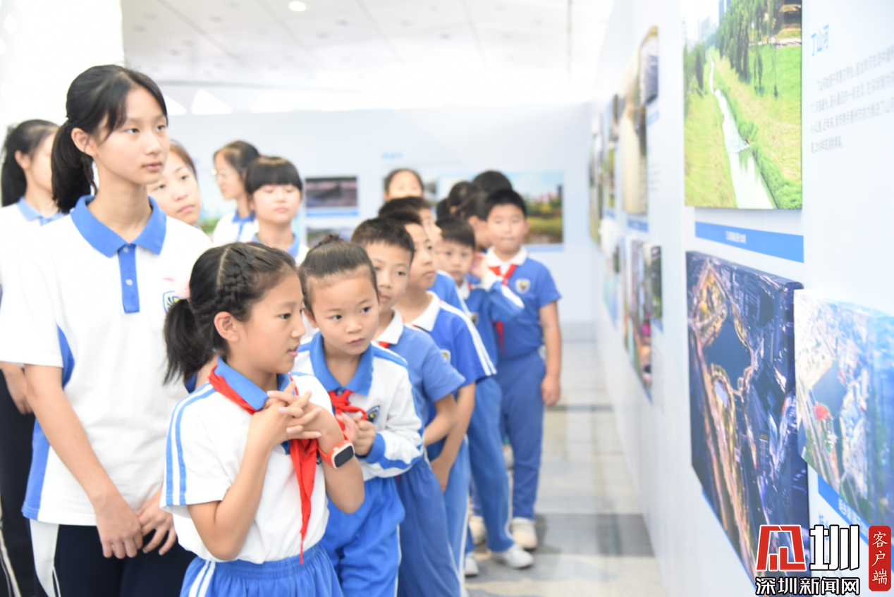 由初中部德育处黄骏师长教师带队与20名优秀门生代表前往灼烁区公共办事平台参不雅“为了深圳的秀水长清”深圳市水污染管理攻坚战纪实图片展灼烁站巡展活动。