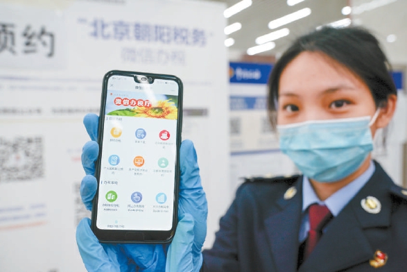 事情职员在展示微信办税界面。本报记者 武亦彬摄