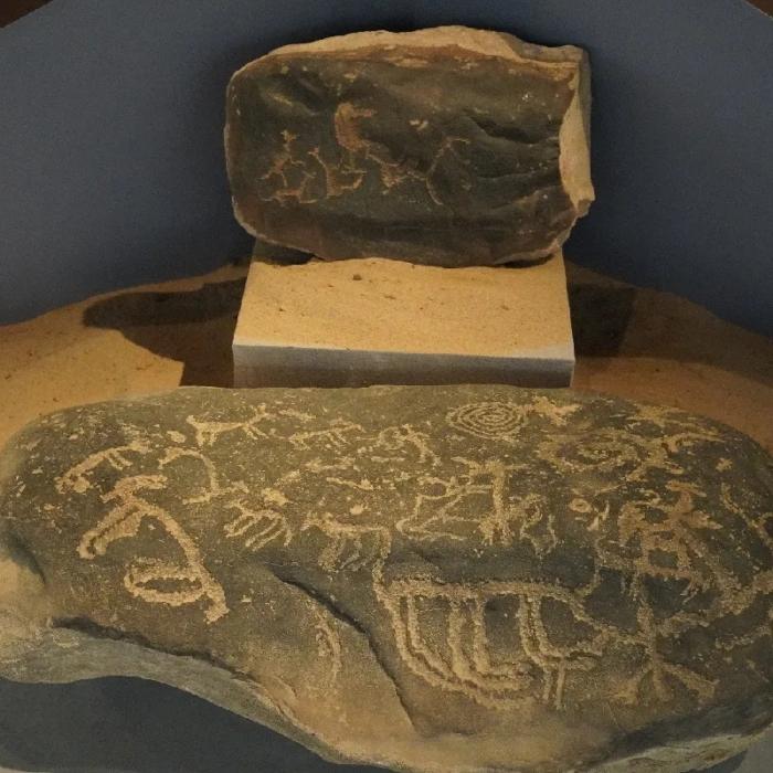 先夷易近们劳作生息的图景在石头上着花