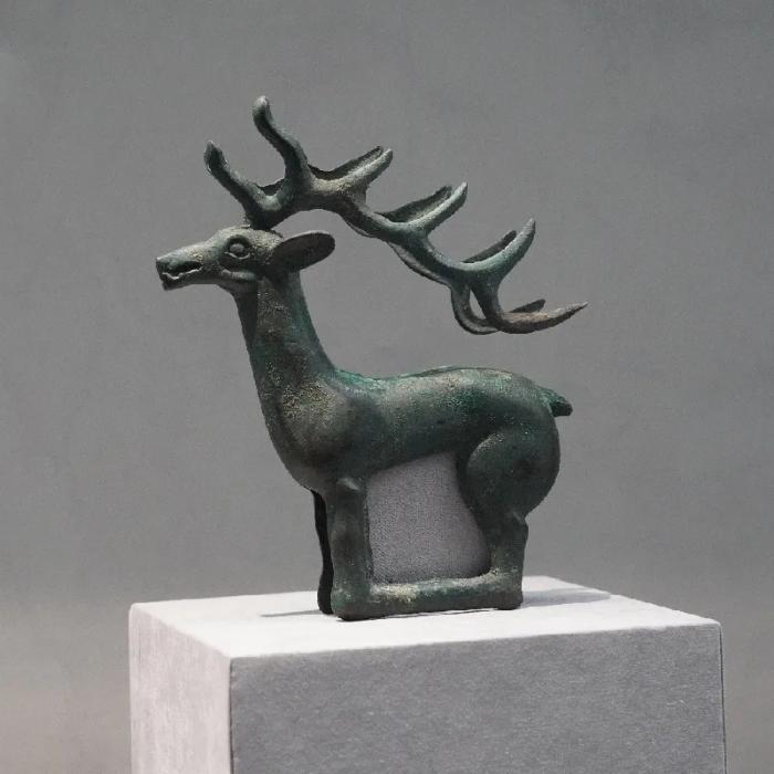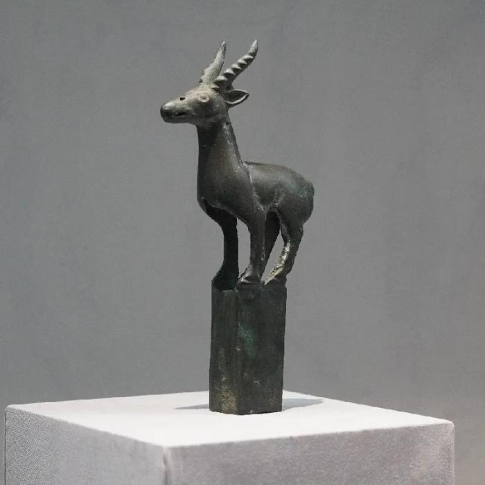 立式有角青铜鹿、羚羊形青铜饰件、