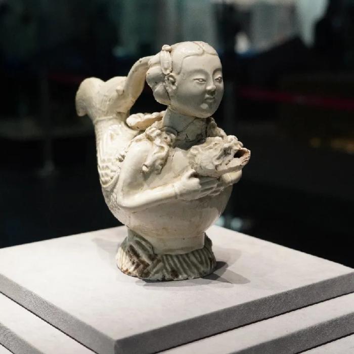 白釉人首摩羯形提梁注壶