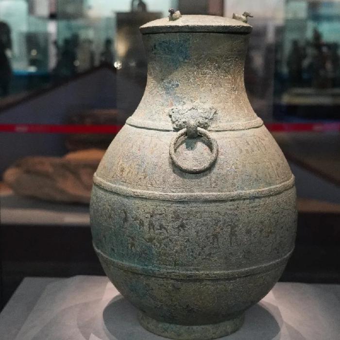青玉大年夜牙璋、水陆攻战纹铜壶、执镜陶俑