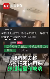 当众用拖把擦拭椅子。该视频在网上宣布后激发浩繁网友评论争论。
