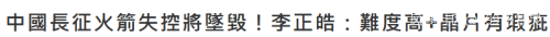 台媒“三立新闻网”发文称“中国长征火箭掉控将坠毁”。