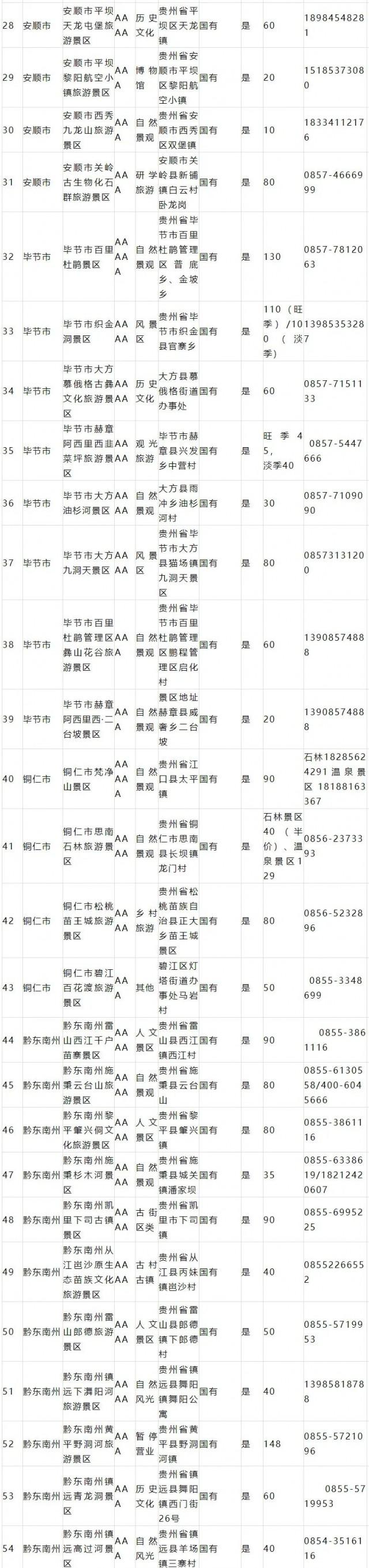 进入贵州省省内开放的国有a级景区