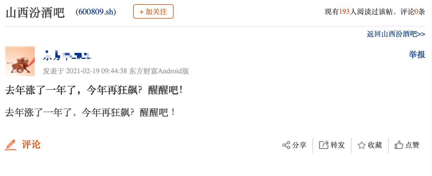 不过,也有网友表达了对山西汾酒涨幅巨大的担忧。