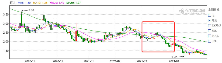 走在转型路上的百世快递在3月股价经历了上半月的增长和下半月的继续下滑。