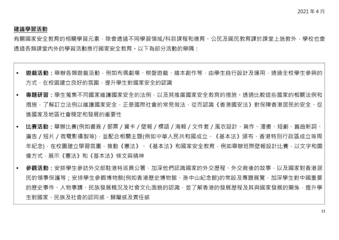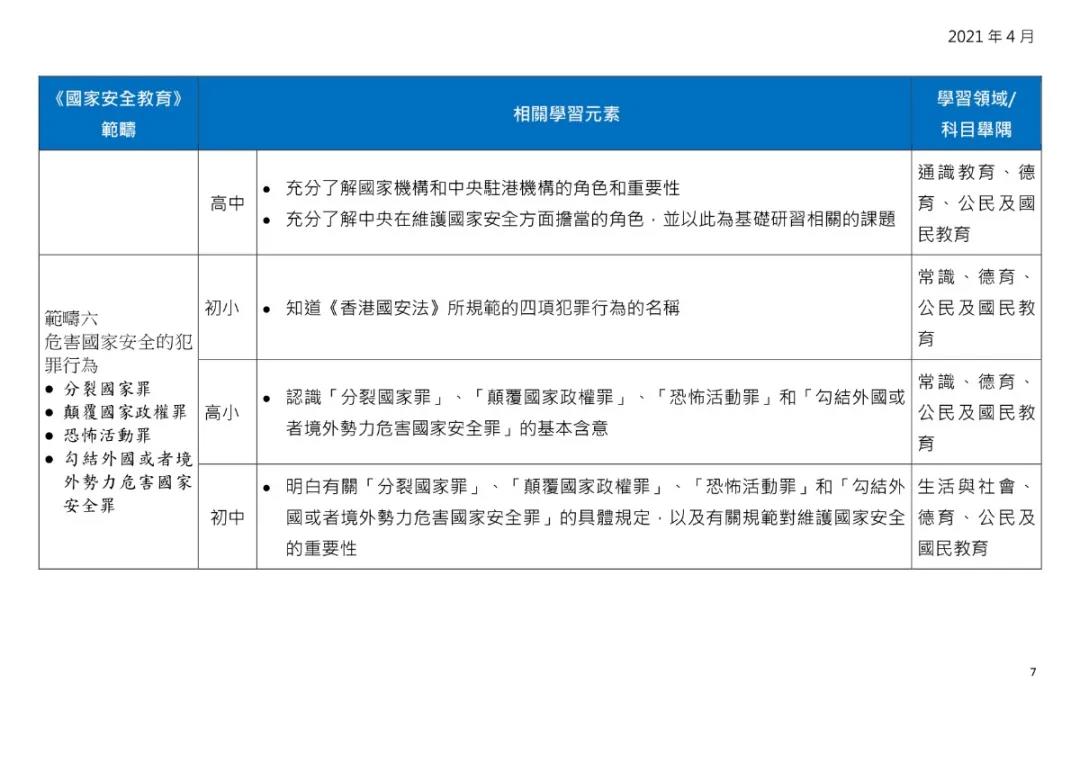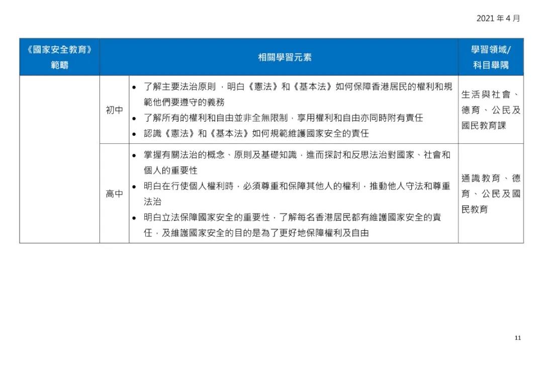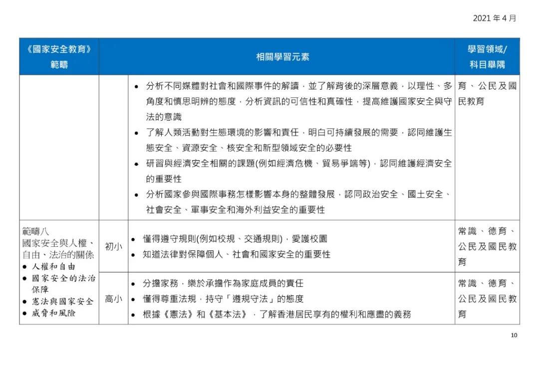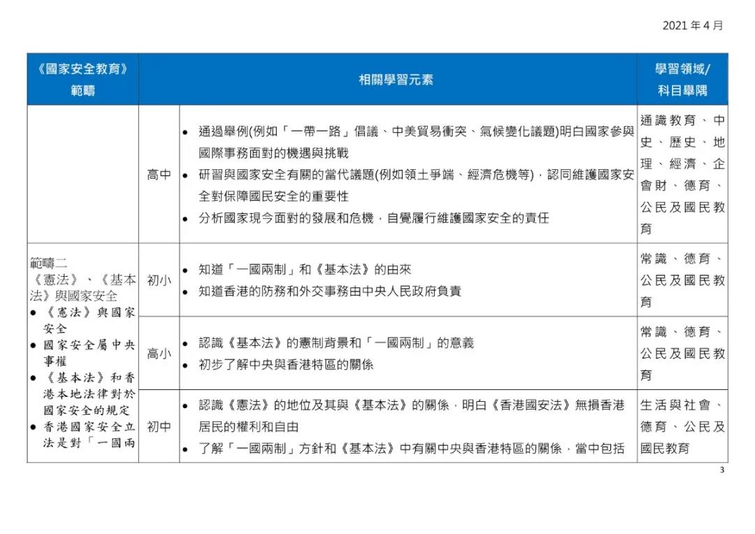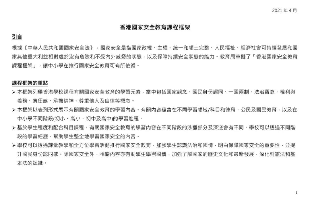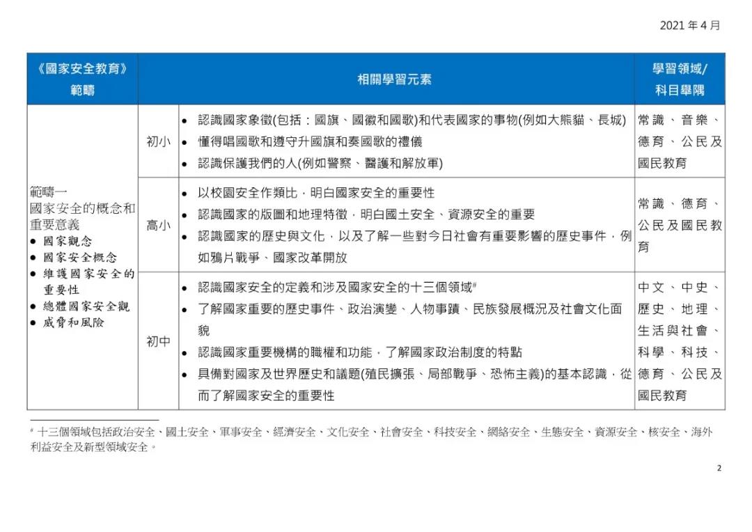 (原题为《喷鼻港中小学课程充足国安教导内容》)