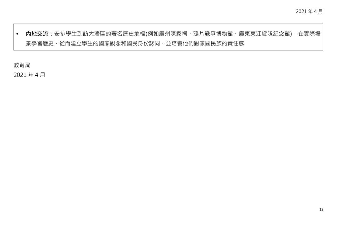 国安教导课程框架对多个科目提出了安排到内地交流考察的内容例如在中文进修中