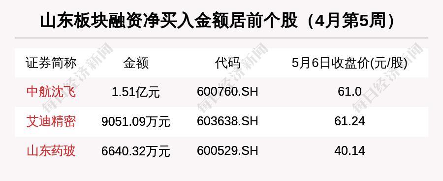 山东板块融资净买入总额为4.61亿元。融资净买入最多的山东股是中航沈飞。