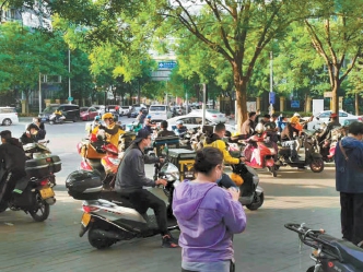 天天饭点前后都邑吸引大年夜量的外卖员来此期待“因为周边蹊径为双向单车道