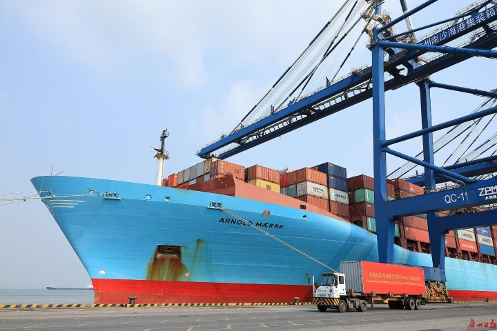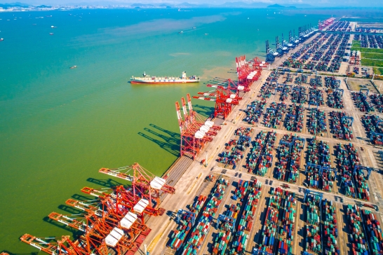 南沙港上的集装箱束装待发