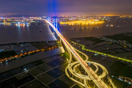 华灯初上在广州之南的南沙港码头
